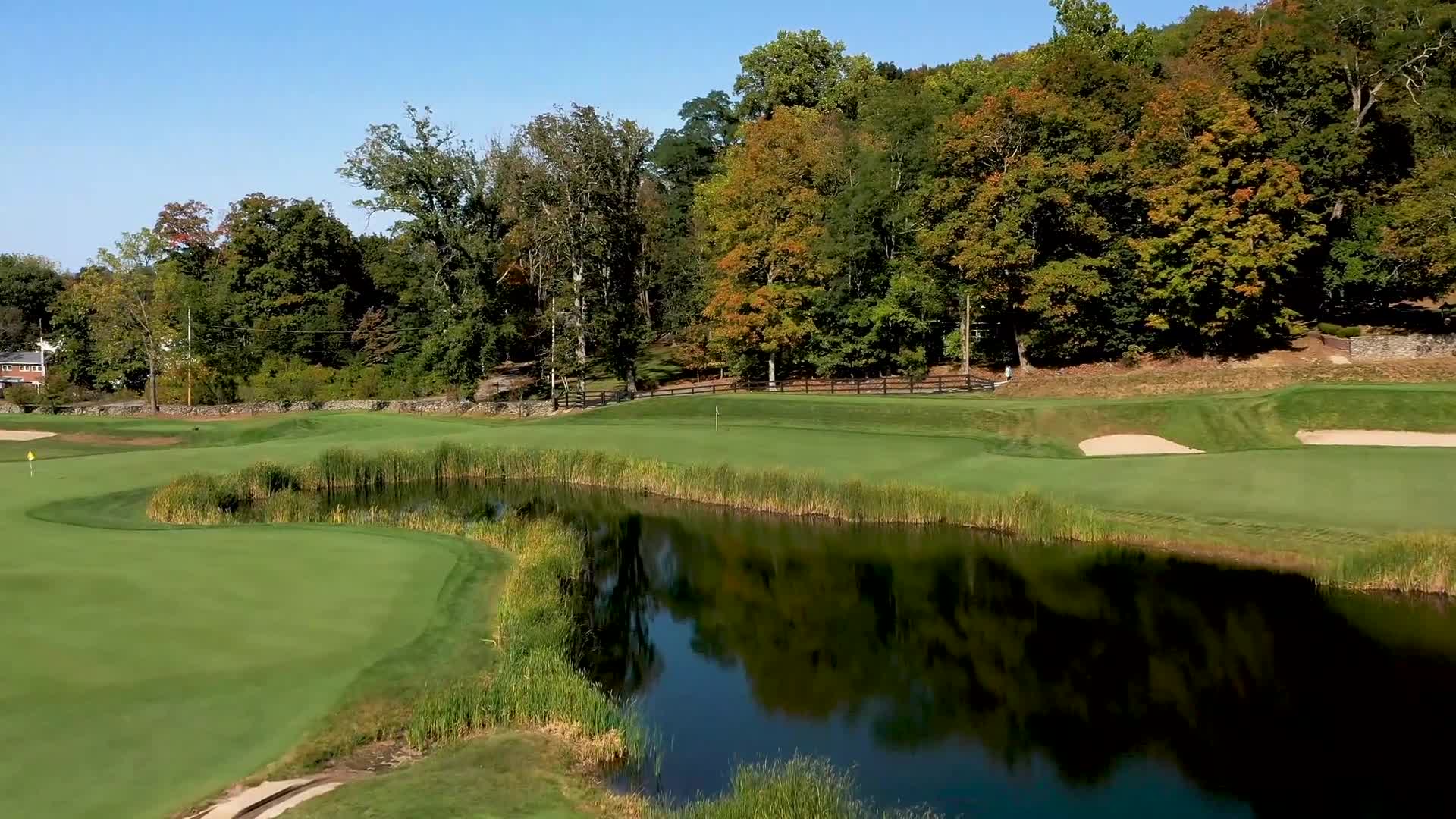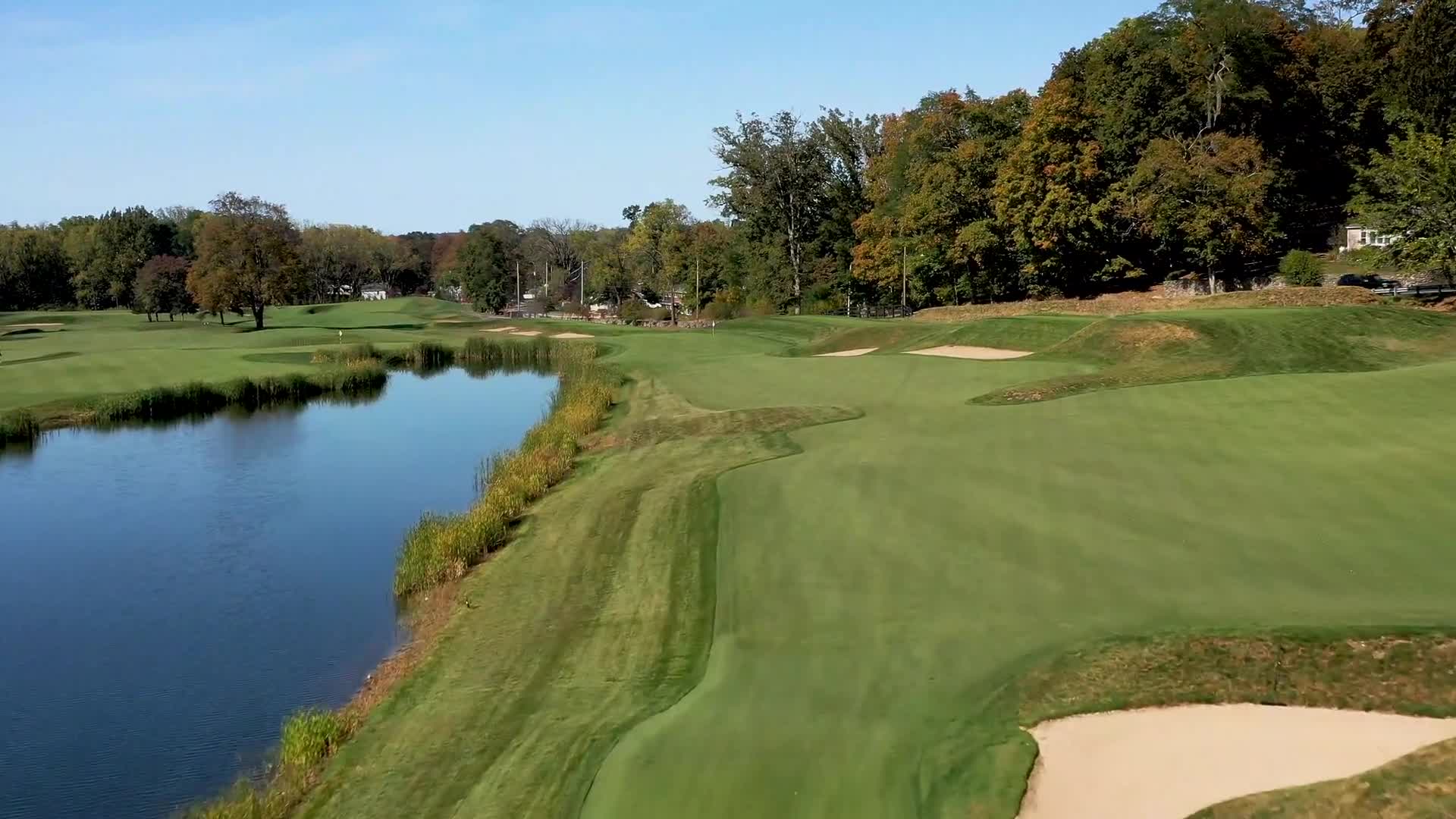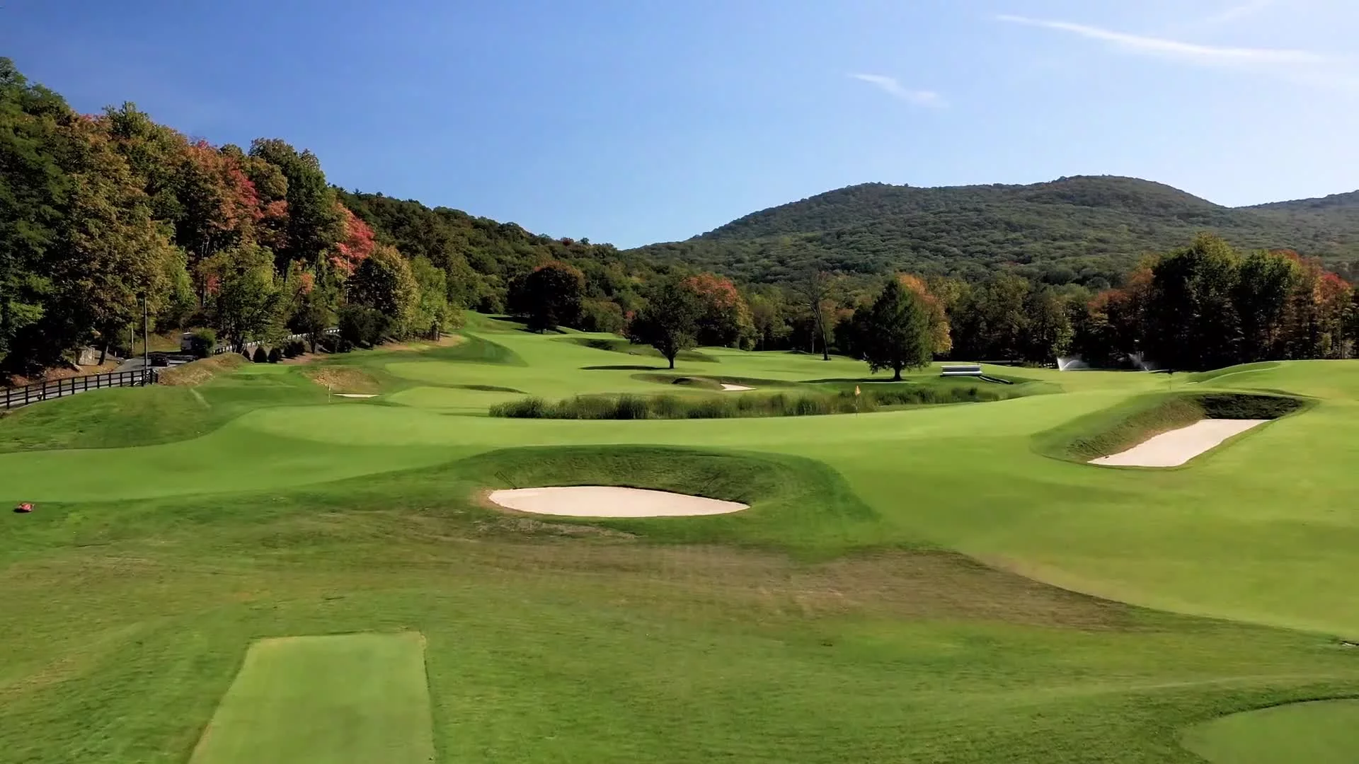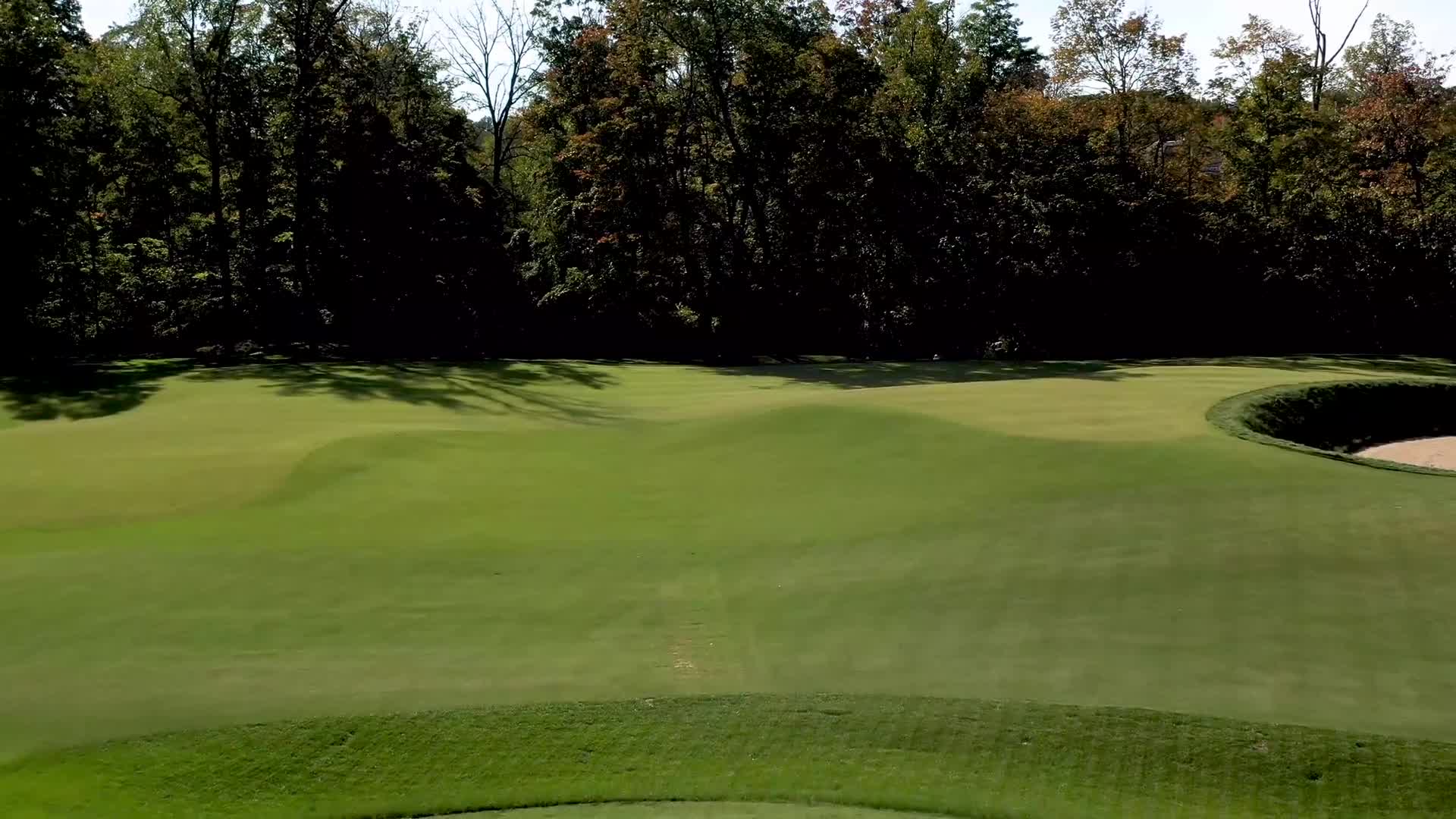 The climb is one of the original Storm King holes, revisited with a large double green with twin false fronts that provides an uphill 170-yard shot to a safe back pin or a fun 90-degree wedge shot from a much shorter tee location. The green is guarded by tall grass on two sides, a bunker that catches the errant shot left, and a friendly maple tree in back that is the safe aim point. As challenging as it looks, if you get a back pin placement, it is a clear birdie opportunity